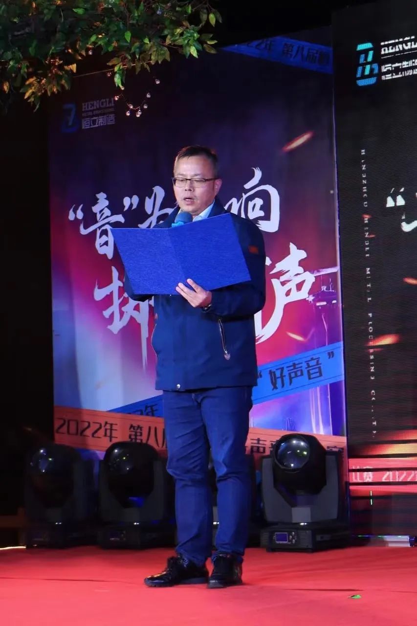 Hangzhou Hengli Manufacturing Technology Co., Ltd; Hengli Good Voice” The contest kicked off in the host's wonderful opening ceremony. First of all, let's invite Lai Binqiang, the general manager of the company and vice chairman of the trade union, to give an opening speech to the Good Voice Competition and announce the official start of the Good Voice Competition